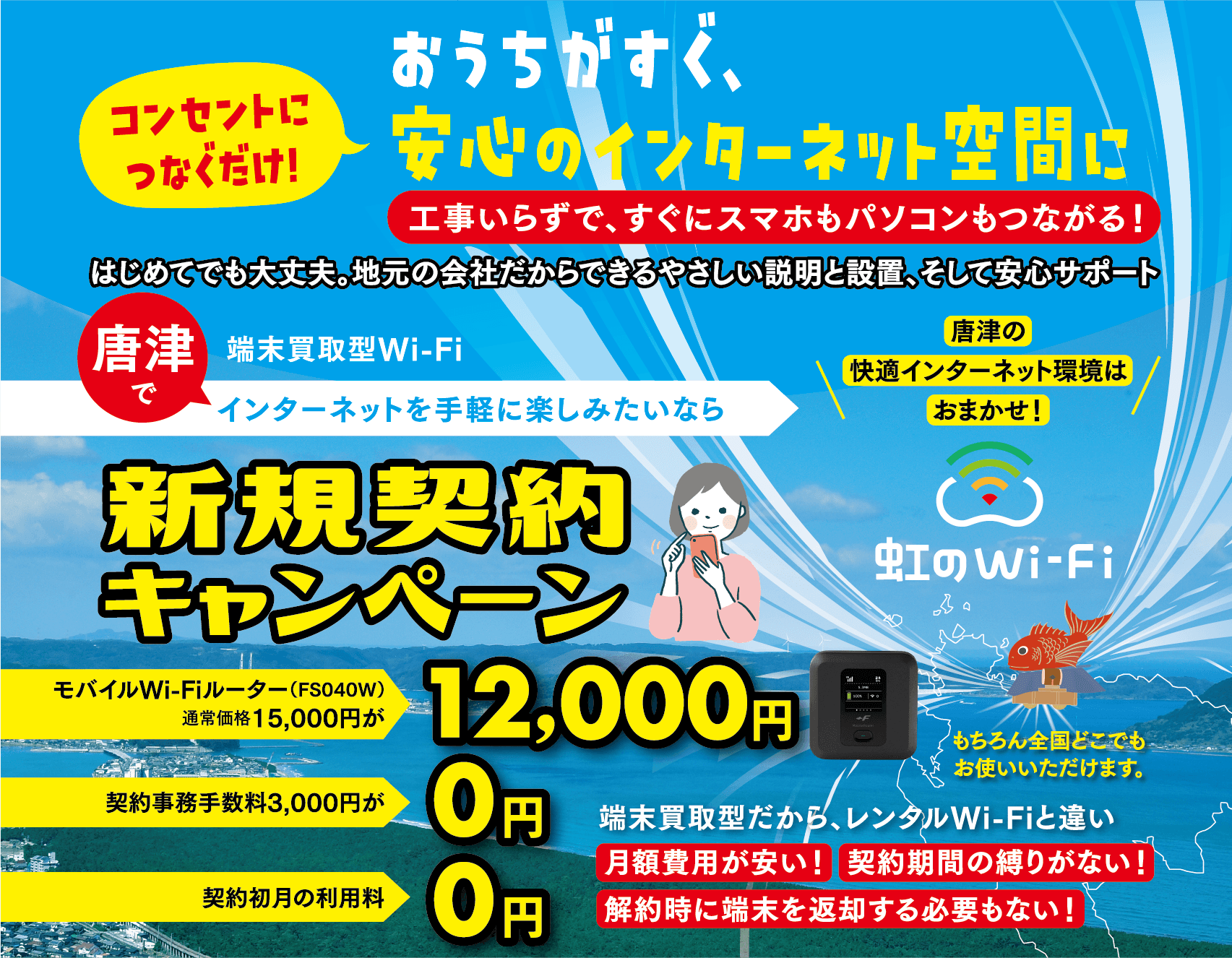 唐津・玄海の皆さまの毎日が、もっと快適で楽しくなるように。インターネットのことなら、どうぞ虹のWi-Fiにおまかせください!